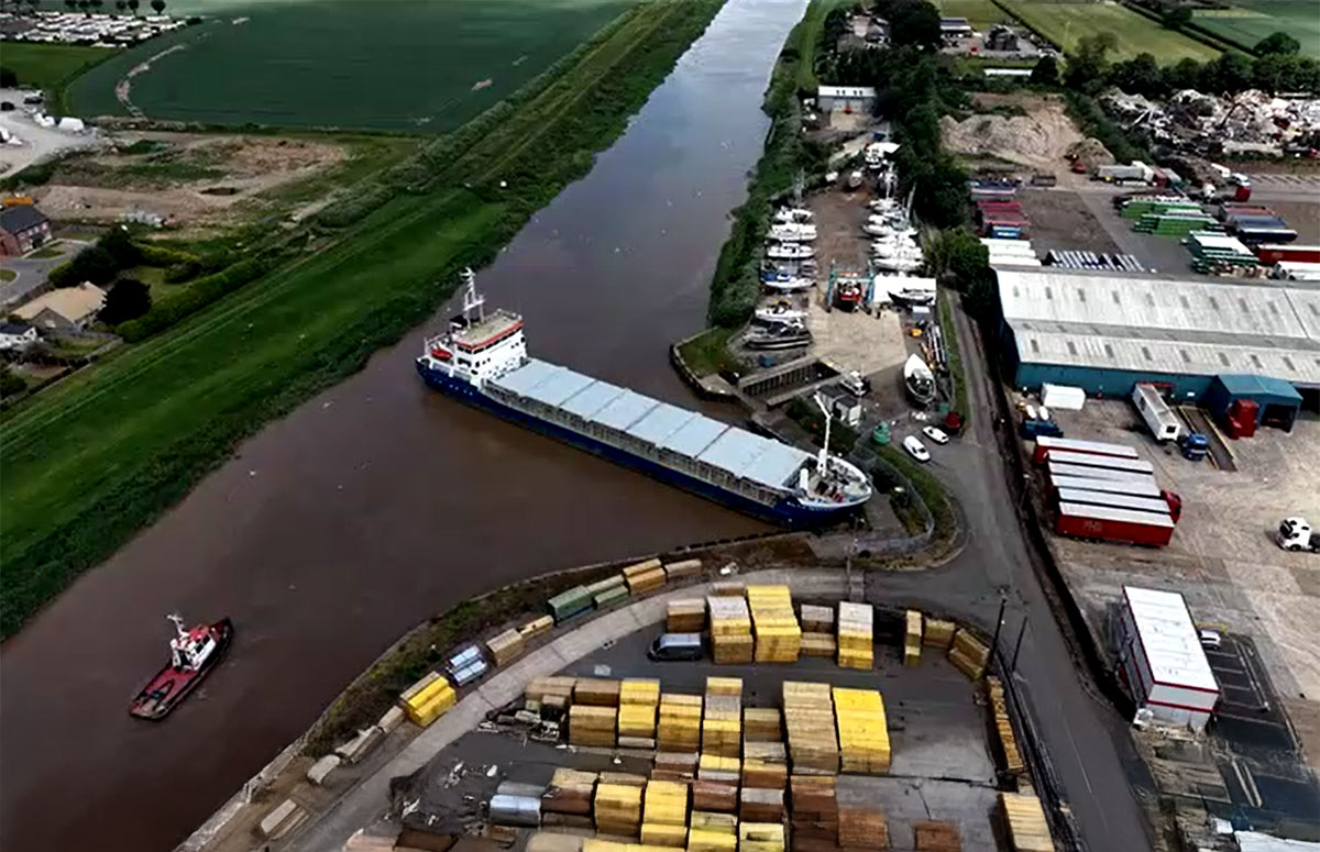 Drone footage captures vessel swing and discharge
